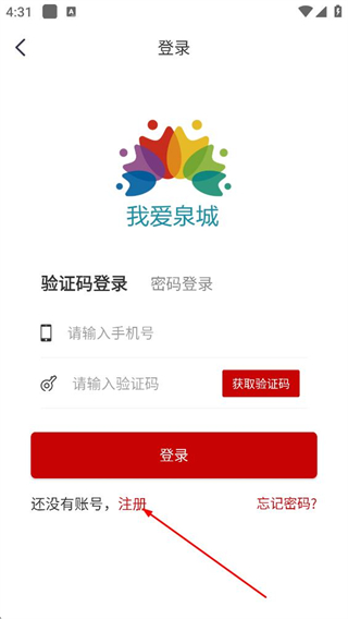 3、在登录页面,点击还没有账号,注册选项,进入注册页面。