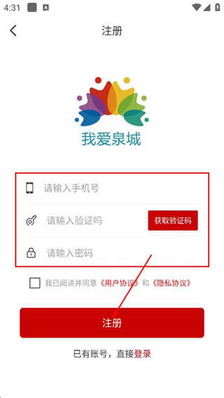4、在注册页面,填写手机号、验证码、设置密码后,完成注册。