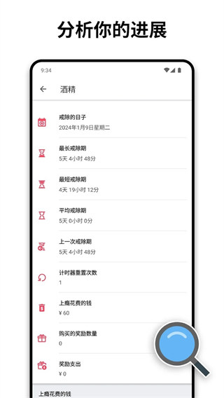 将抽象的成瘾行为转化为可衡量的金钱与时间数据,通过计算戒断后节省的开支、重获的时间,让用户直观感受戒除习惯的实际收益,从根本上激发坚持下去的动力。