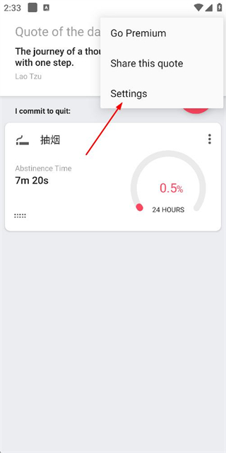 2、在弹出的菜单中点击Settings选项,进入应用的设置页面。
