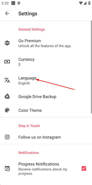 3、在设置页面中点击Language选项,进入语言选择界面。