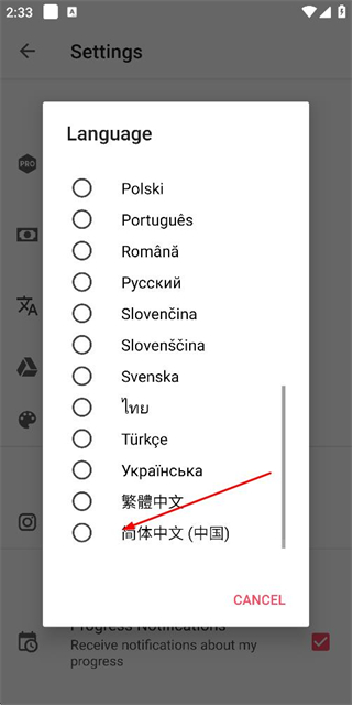 4、在语言选择界面中选择简体中文,完成应用语言的切换。