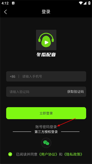 4、在账号密码登录界面,填写手机号和密码,点击登录按钮完成登录。