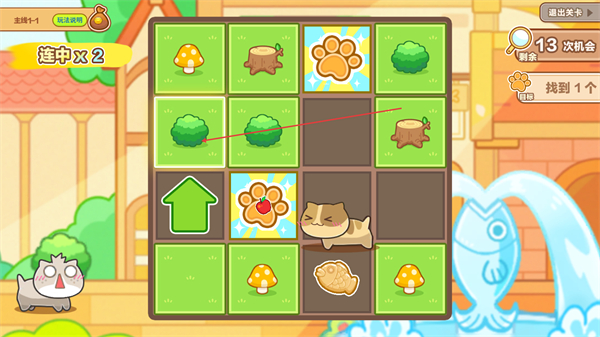 3、操控猫咪移动,收集目标物品,减少剩余任务量,积累连中次数。