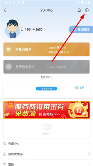 1、在E充站app首页,找到底部的个人中心选项并点击,进入个人页面。