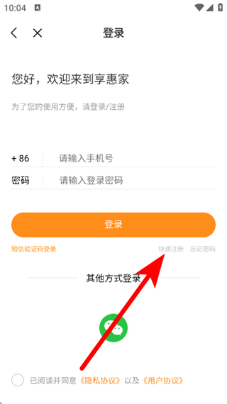 1、在享惠家首页,点击底部我的按钮,进入个人页面。