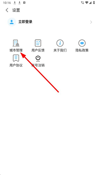 2、在设置页面中,找到城市管理选项并点击,跳转至城市管理的操作界面。