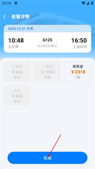 3、最后在G125车次详情页面,点击收藏的按钮,完成对该车次的收藏操作。