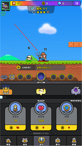 4、挑战新敌人,推进提升收益2/5任务,同时升级属性增强战力。