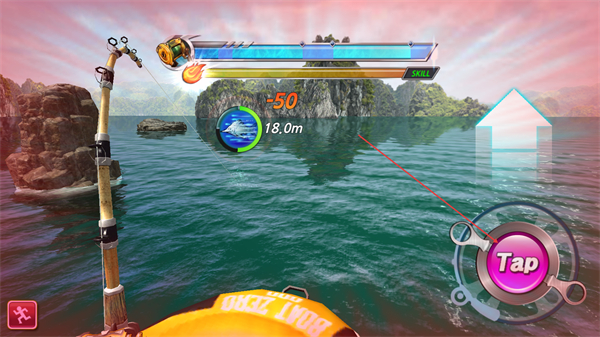 3、鱼咬钩后,点击Tap收线,消耗体力值拉扯,逐步钓起鱼。