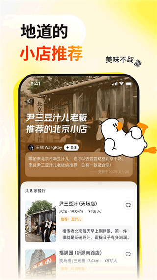 鸭觅是美团推出的垂直美食社区平台,核心围绕真实美食发现、餐厅精准推荐、社区口碑分享与就餐决策辅助等核心诉求,覆盖日常简餐、朋友聚餐、探店打卡、周末休闲与节日宴请等全品类美食场景,适配快速找店、评价参考、分享体验与便捷预订等全场景,打造真实纯粹、精准高效的一站式美食探索解决方案。