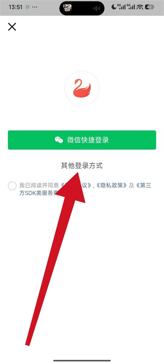 3、在登录界面点击其他登录方式切换到其他登录选项。