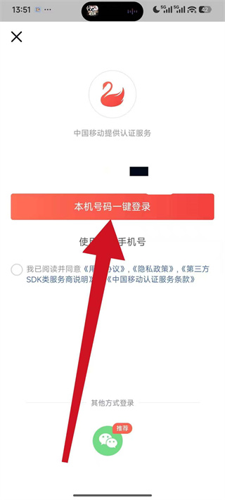 4、若选择本机号码一键登录,勾选相关协议后,完成本机号码的验证登录。