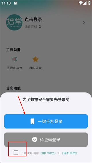 3、在登录弹窗中,勾选协议后选择一键手机登录,即可完成账号登录。