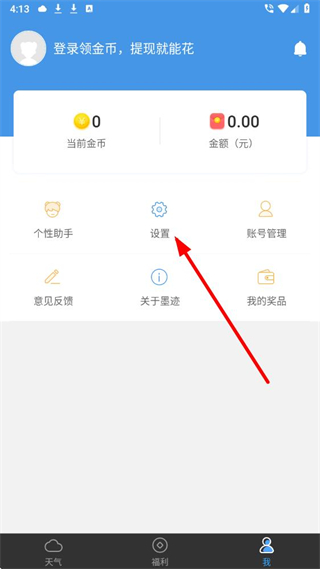 2、在对应页面中,找到设置选项并点击,进入设置页面。