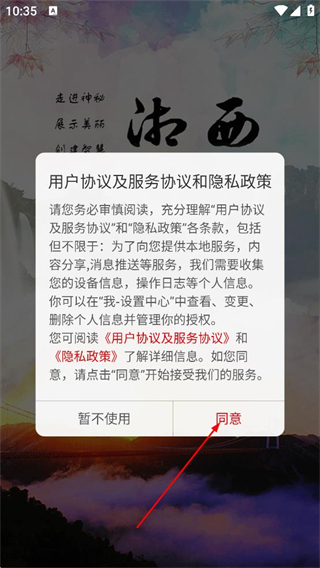 1、阅读协议及服务协议和隐私政策后,点击同意,进入首页。