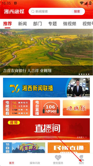 2、在湘西融媒首页,点击底部的我的选项,进入个人的页面。