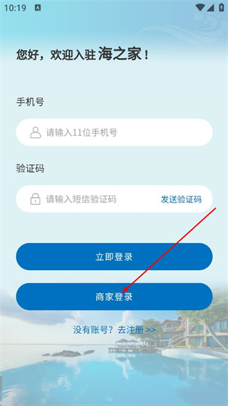 2、在用户登录页面,点击商家登录选项,切换到海之家商家端登录页面。