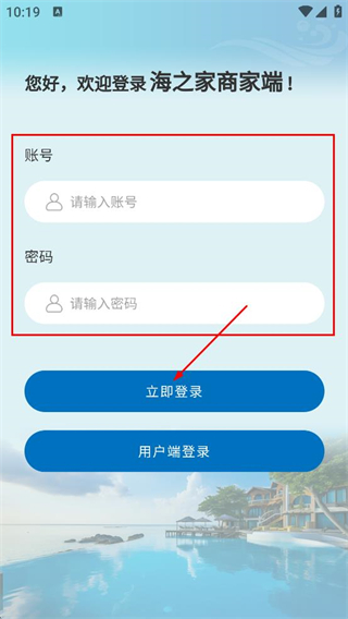 3、在商家端登录页面,填写账号和密码,点击立即登录按钮完成登录操作。