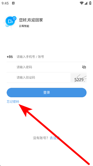 2、在登录页面,点击忘记密码选项,进入忘记密码页面。