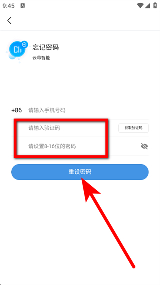 4、输入验证码,设置新密码,点击重置密码,完成密码重置。