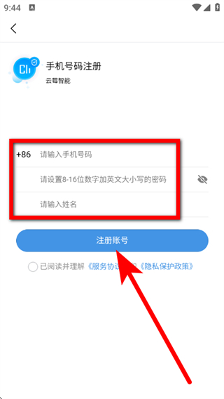 云莓智能app怎么注册账号和密码
