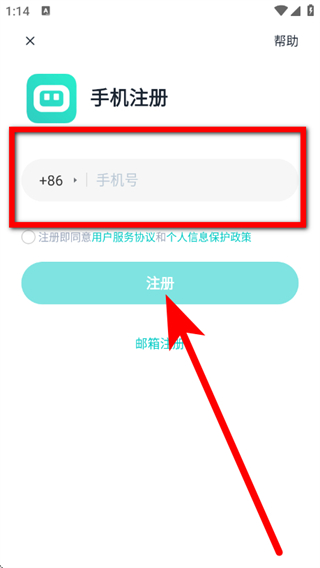 3、在手机注册页面,输入手机号,勾选同意协议后,点击注册。