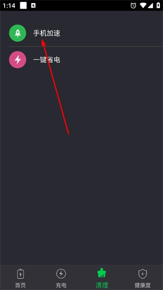 2、在清理页面中选择手机加速选项,进入内存检测界面。