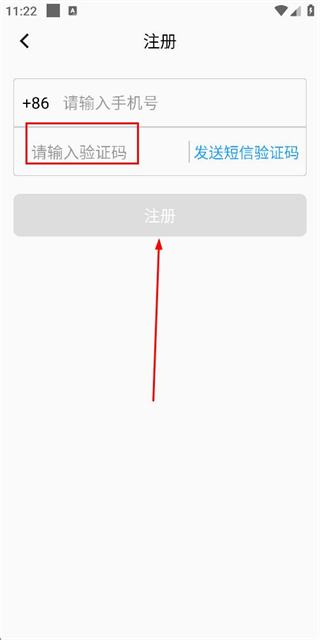 3、在注册账号页面填写验证码后,点击注册完成注册操作。