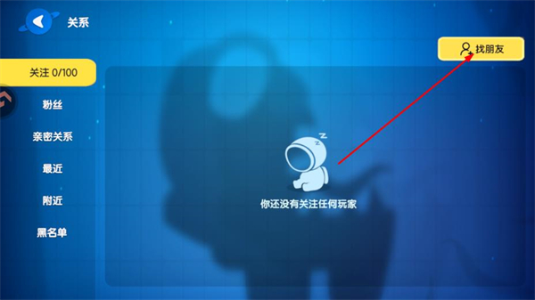 2、在关系页面中,点击右上角的找朋友,打开找朋友界面。