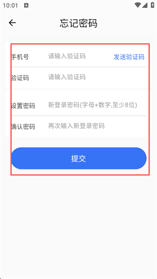 3、在忘记密码页面,填写信息并设置新密码后,点击提交按钮即可完成密码重置。