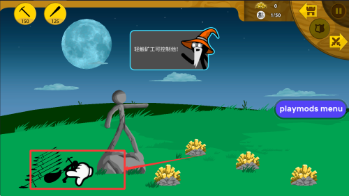 3、这是您的火柴小人,轻轻的按住他,操纵他去采金矿。