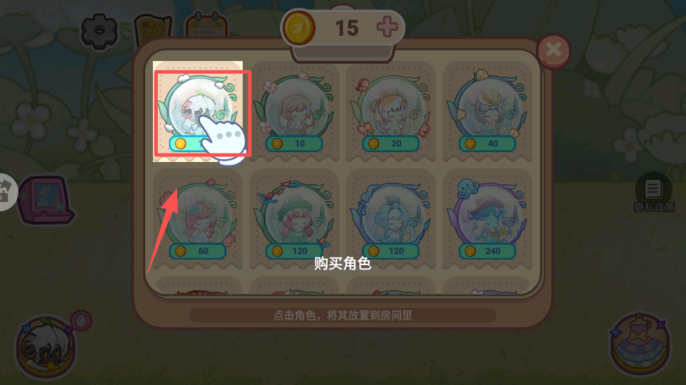 4、点击空白处关闭购买界面,完成角色购买。