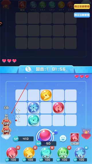 3、当火力不足时,消耗SP能量召唤更多球球,增强战斗阵容,应对更强的敌人。