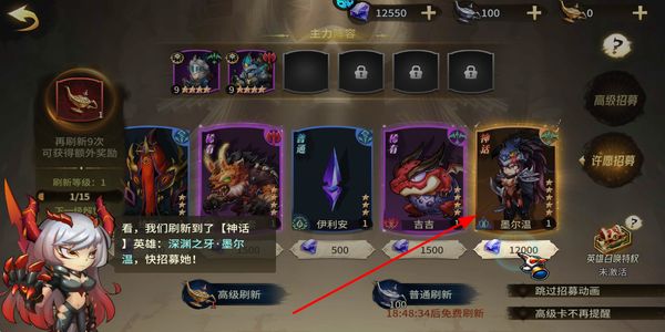 1、许愿招募获取不同品质的英雄,遇到神话英雄时可消耗对应道具招募,将其加入自身的英雄列表,丰富可使用的角色选择。