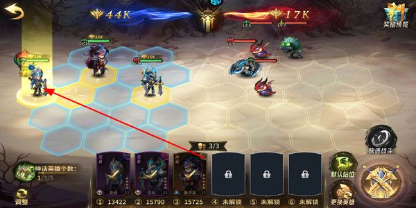 2、将获得的英雄布置到阵容的空位中,调整英雄的站位来搭配队伍,确认阵容后点击出征,即可进入对应的战斗环节。