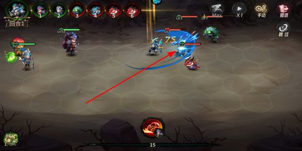 3、进入战斗后英雄会自动发起攻击,攻击时会显示伤害数值,随着回合推进持续与敌方单位对战,逐步消耗敌方战力。
