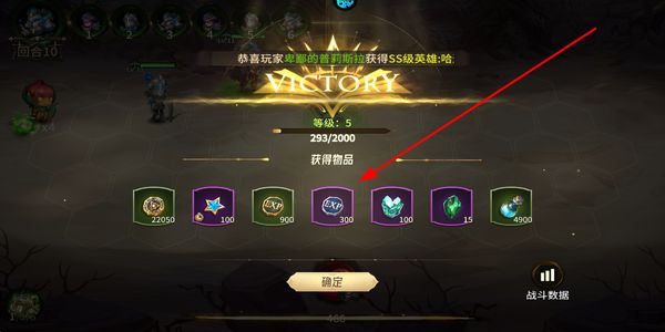 4、战斗胜利后会获得等级提升与各类物品奖励,点击确定即可领取这些奖励,继续参与后续的游戏挑战。