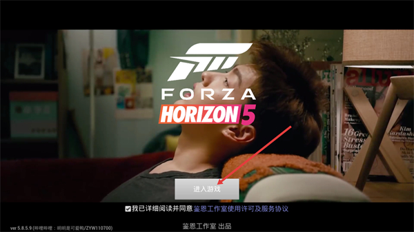 1、打开后先勾选我已详细阅读并同意服务协议选项,再点击界面中的进入游戏按钮,即可进入游戏的赛车驾驶界面。