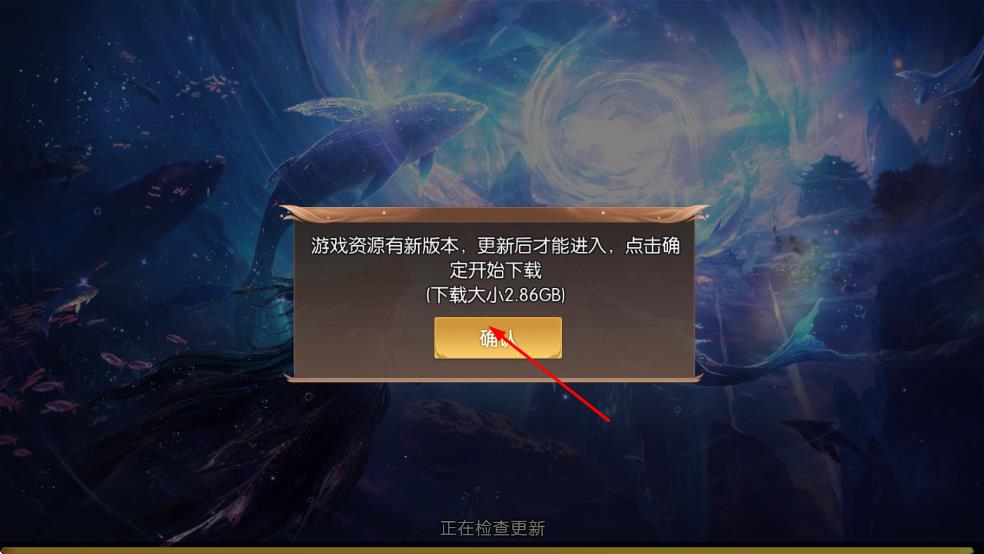 2、看到游戏资源更新提示弹窗,确认下载大小后,点击弹窗里的“确认”按钮,开始下载更新资源。