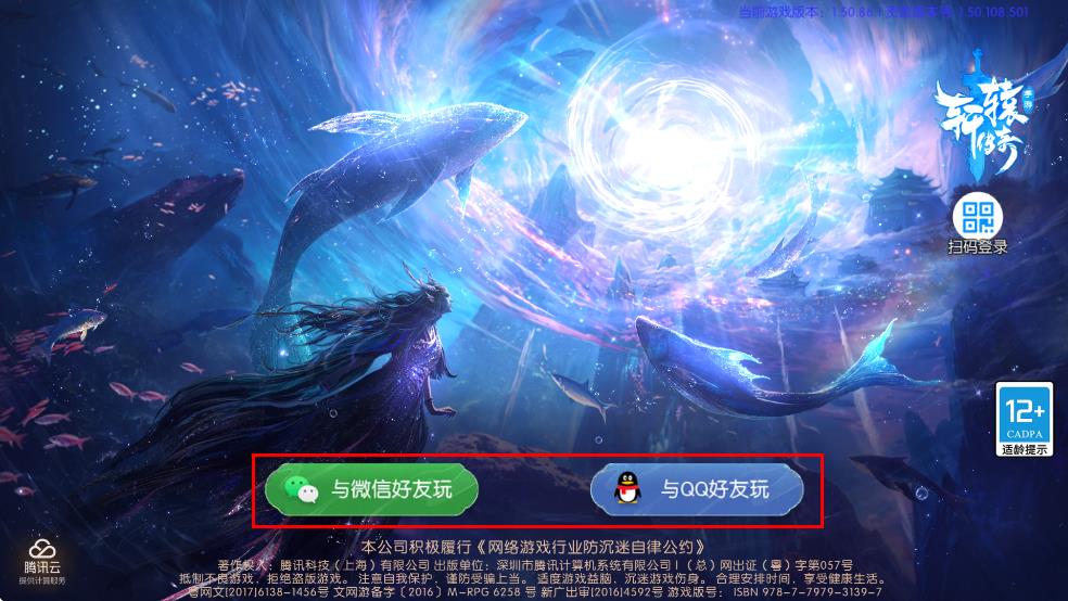 3、等待资源更新完成,进入登录界面,选择“与微信好友玩”或“与QQ好友玩”选项,准备登录游戏。