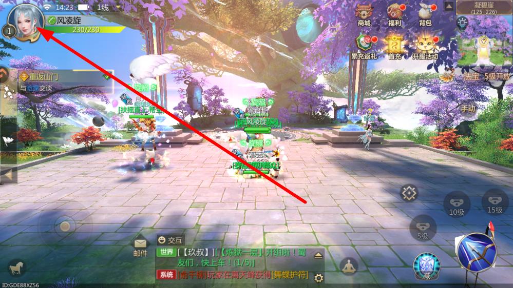 2、进入游戏后,点击左上角角色头像,打开角色信息界面。