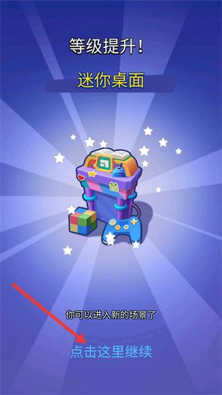 4、等级提升后解锁【迷你桌面】场景,点击【点击这里继续】按钮,进入新场景继续跑酷挑战。
