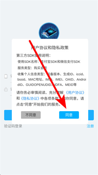 1、打开大实验家,弹出弹窗后,点击同意,进入账号登录页面。