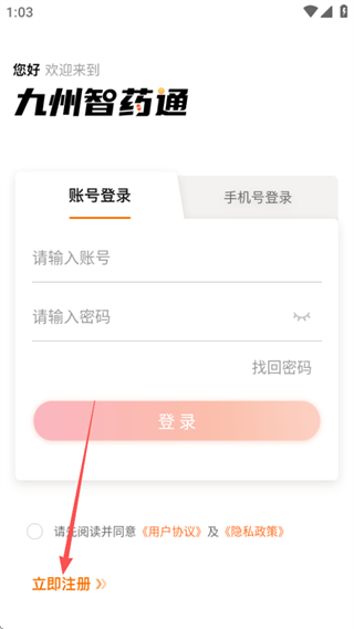1、进入登录页面后,点击立即注册选项,可进入注册页面。