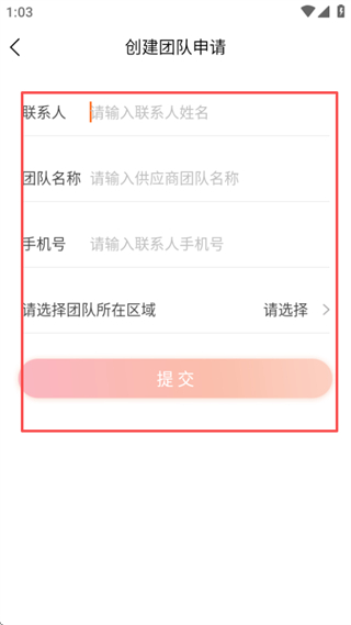 3、在创建团队申请页面,填写信息后点击提交按钮即可完成团队创建申请。