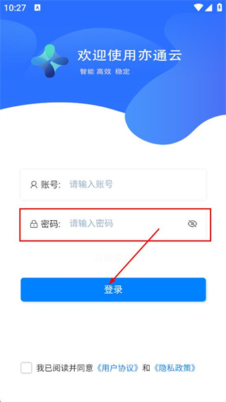 2、在亦通云登录页面,填写请输入账号对应的内容,即可进入下一步的操作。