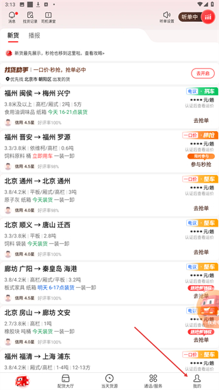 运满满配货司机版是专为货运司机打造的高效抢单平台,注册登录后即可在线抢单,支持按运输路线、时间等条件精准筛选,快速匹配合适订单,平台海量货源每日实时更新,订单的货物信息、车型要求等清晰透明,方便司机自主挑选,更有智能匹配功能助力高效配货,降低空返率,是货车司机接单赚钱的实用工具。