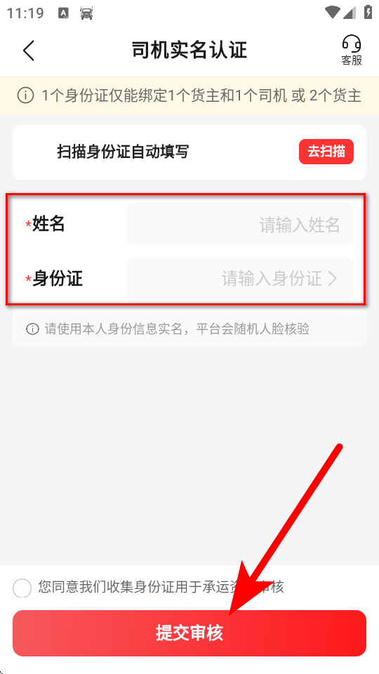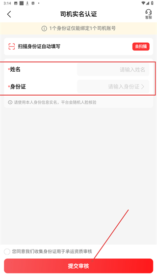 4、在页面填写信息并确认协议后,点击提交审核,完成司机认证操作。
