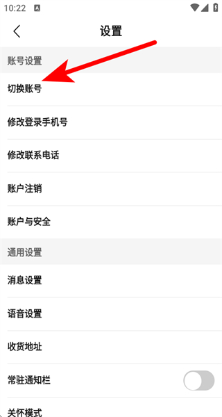 3、在设置页选择切换账号,进入切换账号登录的页面。